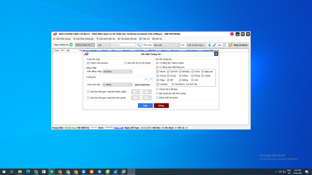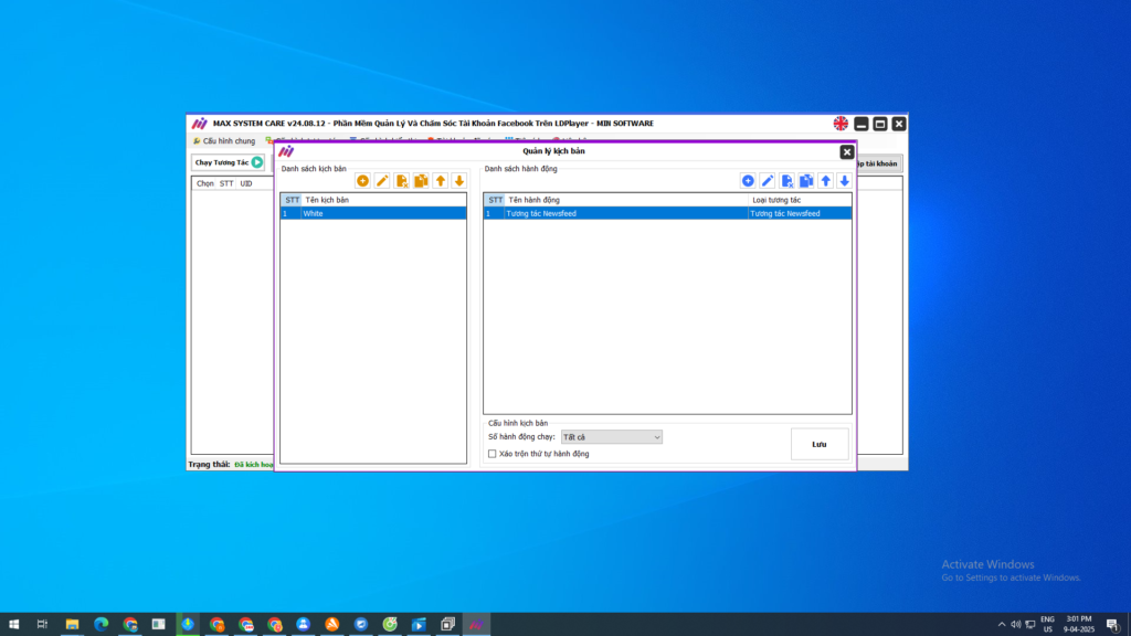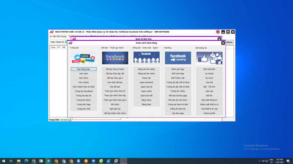 Tự động hóa hoàn toàn: Max System Care hỗ trợ tự động tương tác như lướt bảng tin, kết bạn, tham gia nhóm, chia sẻ bài viết, livestream, và nhiều hơn nữa.