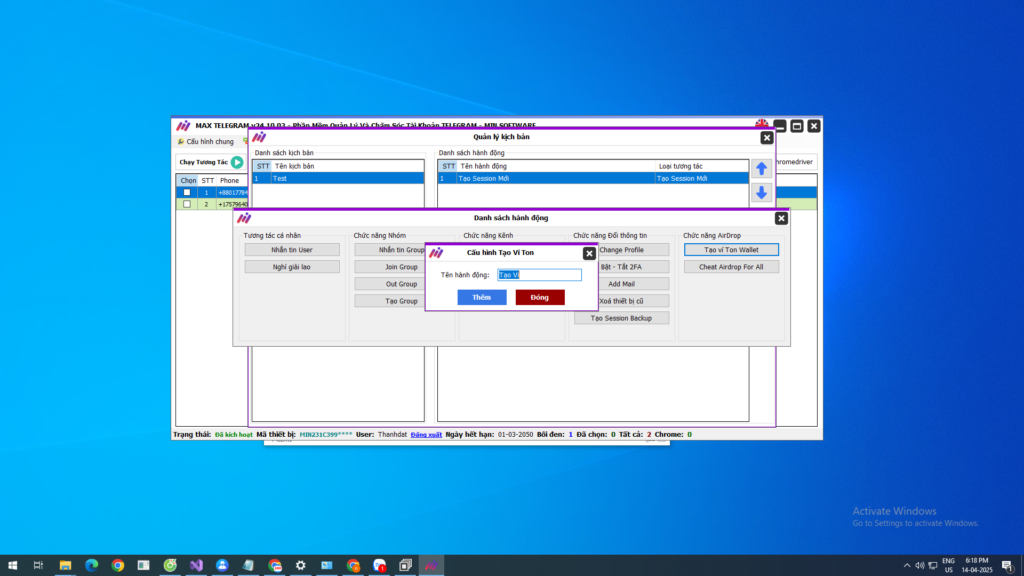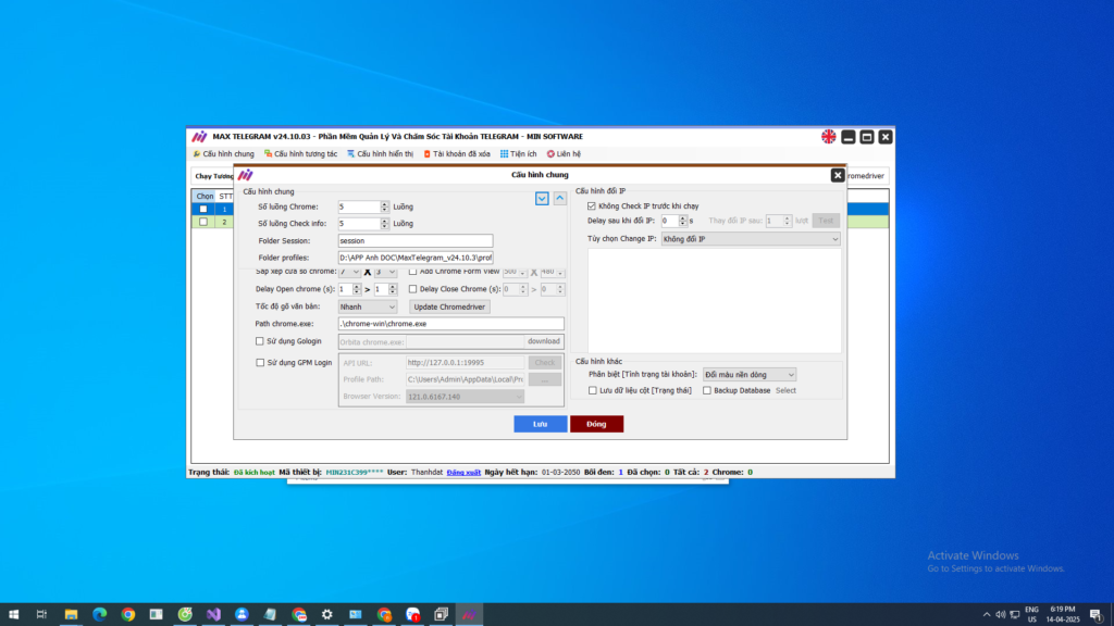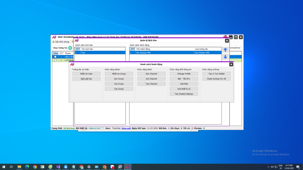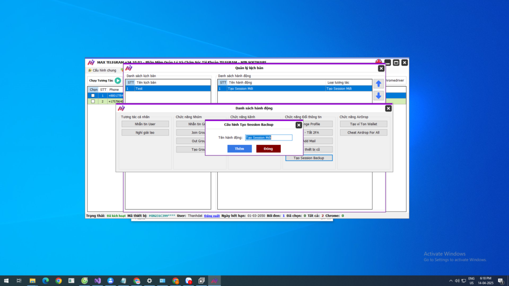 Quản lý toàn diện: Sử dụng dữ liệu quan trọng như session và tdata để kiểm soát tài khoản nhanh chóng, an toàn và tối ưu hóa hoạt động.